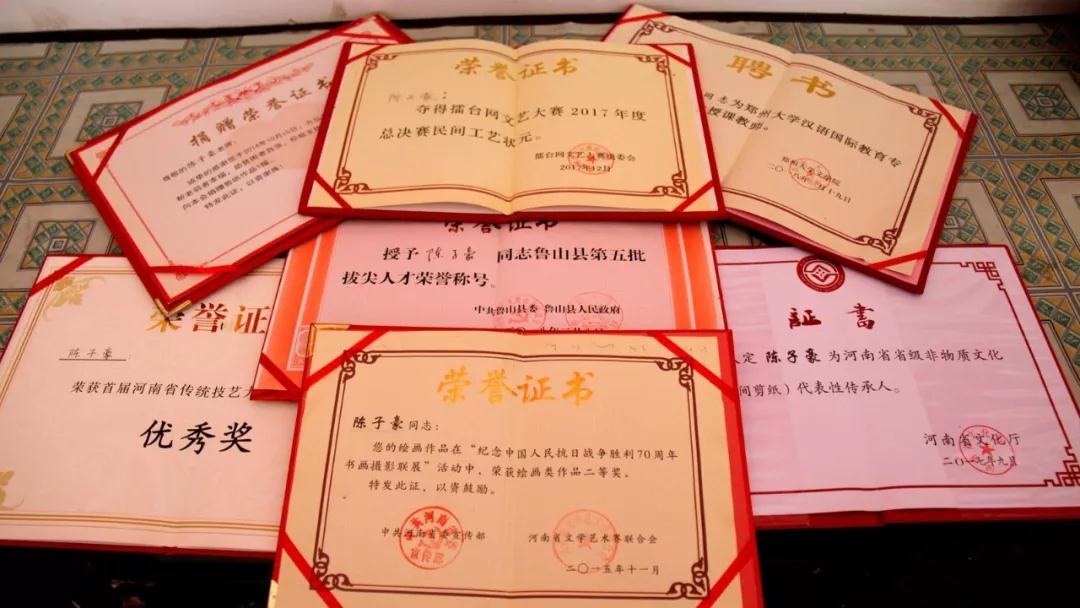近年,魯山多幅剪紙作品榮獲河南省剪紙大賽一等獎(jiǎng)。河南省農(nóng)民書(shū)畫(huà)大賽二等獎(jiǎng)等,國(guó)內(nèi)外多家媒體報(bào)道。《百米奧運(yùn)》《金陵十二釵》《水滸一百單八將》《老鼠娶親》等多幅作品被北京奧組委、河南省博物院等收藏。陳子豪通過(guò)多年潛心研究實(shí)踐,創(chuàng)造“撕紙”藝術(shù)形式,為省級(jí)非物質(zhì)文化遺產(chǎn)。撕紙用巧妙的“疊”與“撕”的技巧手法完成對(duì)作品的創(chuàng)作,技法獨(dú)到、筆畫(huà)講究、形神相間,被藝術(shù)界譽(yù)為“中原神剪”“中華手撕紙一絕”。