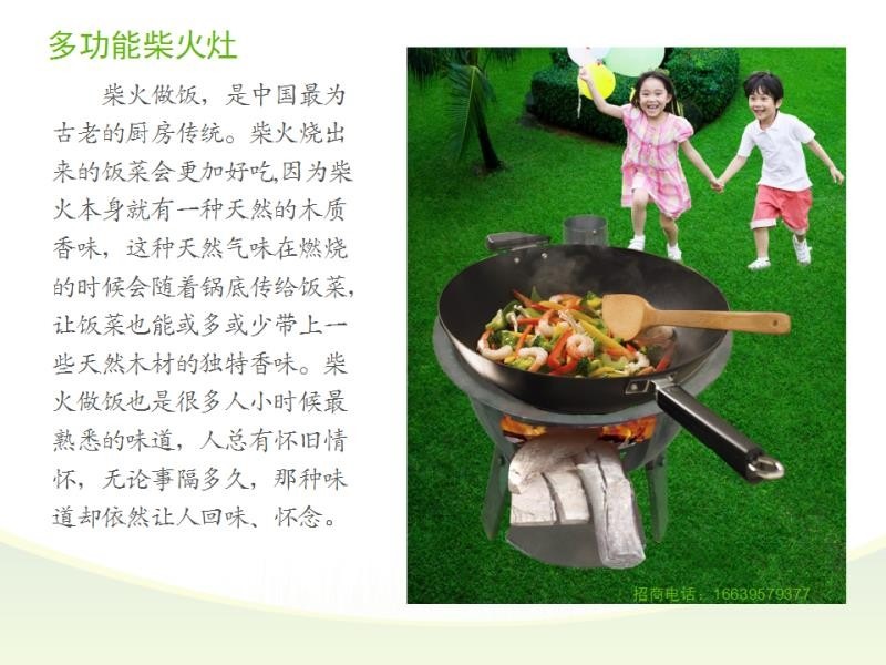 柴火做飯,應(yīng)該是中國(guó)最為古老的廚房傳統(tǒng),如今各種家用電器,天然氣灶盛行,要尋這份情感,只能去到偏遠(yuǎn)一些的農(nóng)村,或者一些懷舊飯店,但是柴火飯的味道,卻依然讓人懷念,我公司根據(jù)市場(chǎng)需要,特研制出一種新型產(chǎn)品,多功能柴火鍋臺(tái),代替?zhèn)鹘y(tǒng)土灶鍋臺(tái),采用一整塊鋼板一次沖壓成型,外形美觀,使用方便,不易變型,不易開(kāi)裂,重量輕,移動(dòng)方便。廣泛應(yīng)用于戶外野炊、休閑燒烤、家庭做飯、農(nóng)村辦酒席等場(chǎng)合,具有蒸、煮、煎、炒、燉、油炸、火鍋、燒烤、取暖等功能。產(chǎn)品型號(hào)有:350mm、400mm、450mm、500mm、550mm、600mm。產(chǎn)品一經(jīng)上市,受到市場(chǎng)一致好評(píng),歡迎有心人士來(lái)廠參觀,訂購(gòu)。服務(wù)電話:16639579377