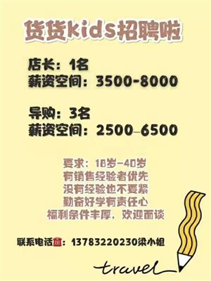 貨貨童裝店招聘