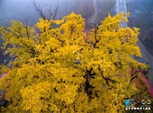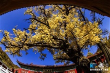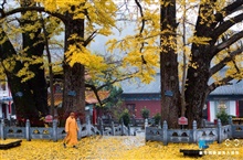 河南魯山2800年銀杏葉黃掩映古寺
